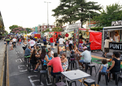 Las actividades empezaron temprano. A las 18 hs., las personas participaban en juegos, degustaban alguna comida u observaban los espectáculos. Bruno Funes llegó desde Santa Rosa con su pareja. «Vinimos a pasear. Aprovechamos la oferta gastronómica, probamos el shawarma y los tacos. Nos quedamos a ver el show de tango», contó.