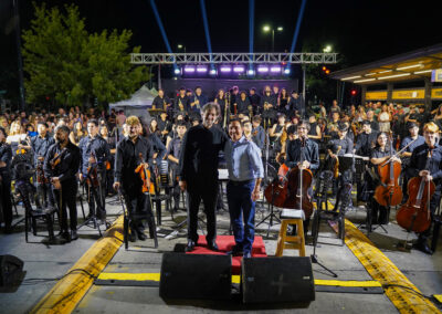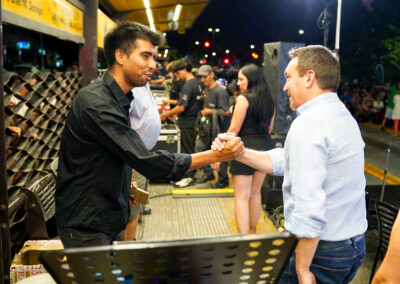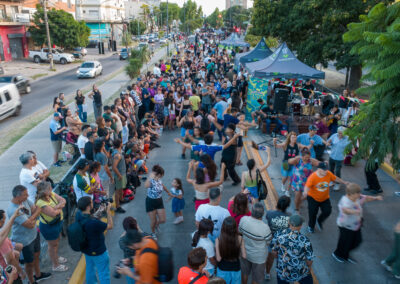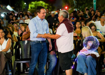 Previo a la actuación del ensamble, el intendente Andrés Watson charló con vecinos y vecinas que aprovechaban las atracciones de cada posta: bailes, foodtrucks, emprendimientos, recreación infantil, entre otras.