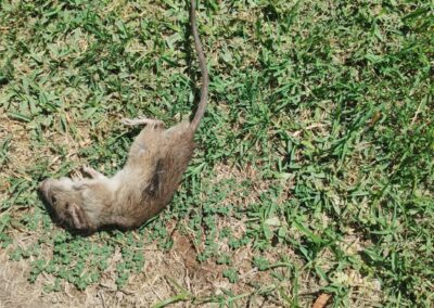 Esquina de Montevideo con Hilario Lagos. Un viejo local abandonado y tres locales del mismo tenor sobre Montevideo, se han convertido en el albergue de roedores del tamaño de un gato mediano. Los vecinos están alarmados. Viven prácticamente encerrados por la proliferación de los animales.