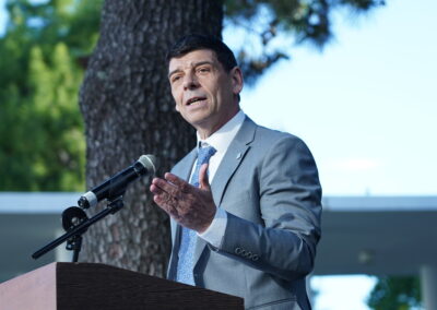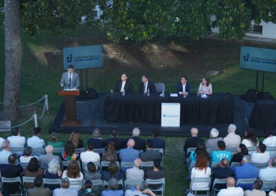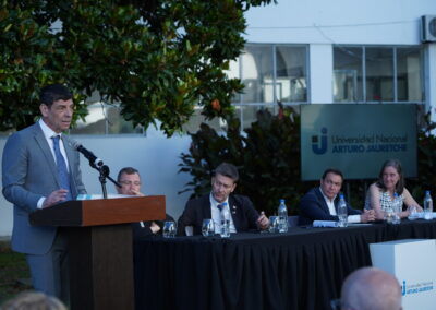 Durante su discurso, el rector Arnaldo Medina destacó el rol estratégico de la Universidad en el desarrollo social y comunitario: «La UNAJ es mucho más que un edificio y una matrícula, es un instrumento que acompaña la transformación de nuestro país y de nuestra comunidad». Asimismo, subrayó la identidad institucional vinculada al nombre de Arturo Jauretche, al que definió como «un nombre representativo del pensamiento nacional».
