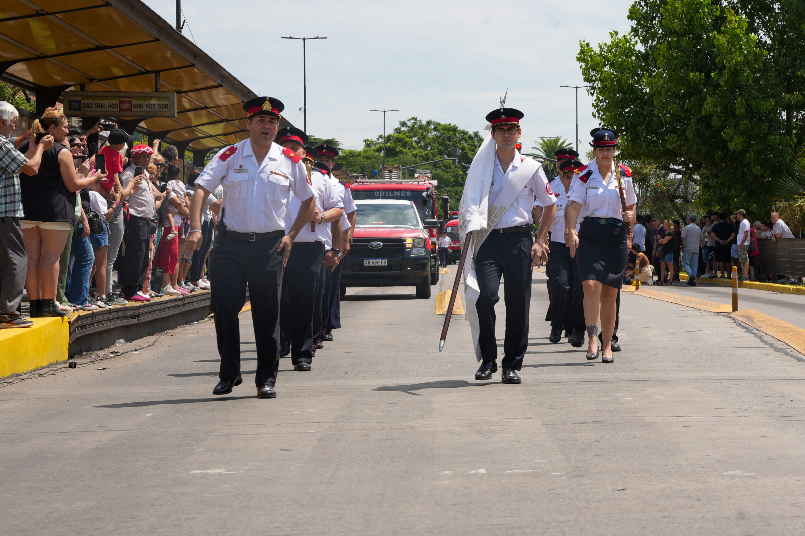 En la jornada, miembros del cuartel local, de Quilmes, San Francisco Solano, La Florida, Berisso, Magdalena, Berazategui, Gutiérrez y Hudson, sumado a la Gendarmería Nacional, Centro de Veteranos de Guerra «Héroes de Malvinas», Policía Bonaerense, Guardia Comunal, Rotary Club, Defensa Civil marcharon por Av. San Martín ante una multitud de vecinos y vecinas.