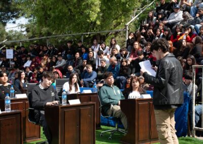 El cierre reunió a más de 400 alumnos de las escuelas participantes, quienes colmaron dos tribunas especialmente montadas para la ocasión. Allí compartieron un acto que fue, a la vez, un espacio de celebración y reflexión sobre la importancia de la participación juvenil.