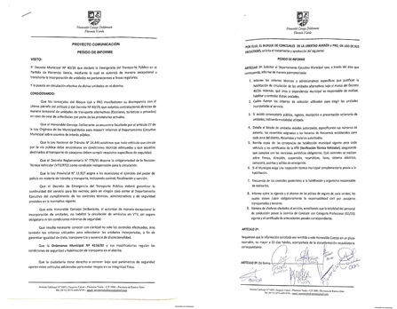 ARTICULO 2°: Instrúyase a la Secretaría de Gobierno, a adoptar las medidas excepcionales necesarias para garantizar la prestación del servicio de transporte de jurisdicción comunal, pudiendo Rediseñar líneas y recorridos: modificar itinerarios, unificar líneas o establecer servicios troncales temporales paro optimizar el uso de las unidades, modificar la cantidad, ampliar o reemplazar en función al requerimiento y necesidades que ameriten.