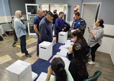 Cabe seรฑalar que solo compitiรณ la Lista Unidad Azul y Blanca Nยบ 2, que encabezรณ Darรญo Dโ€™Aquino. Tras finalizar el escrutinio definitivo, la ๐—๐˜‚๐—ป๐˜๐—ฎ ๐—˜๐—น๐—ฒ๐—ฐ๐˜๐—ผ๐—ฟ๐—ฎ๐—น comunicรณ los resultados ante un nutrido grupo de trabajadoras y trabajadores que, pese a la intensa lluvia, se acercaron para conocer los resultados.