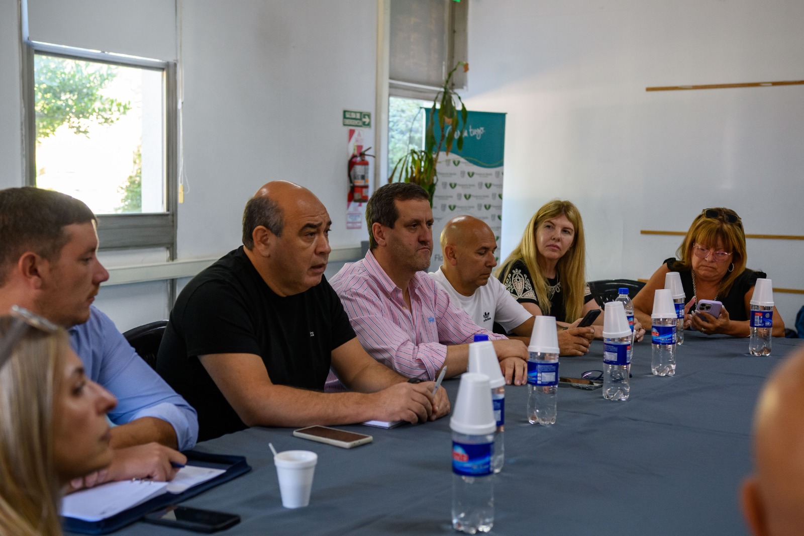 Integrantes del gabinete local, representantes del ámbito pedagógico y miembros de la Unión Educativa de Gestión Distrital protagonizaron un encuentro para abordar el reordenamiento en la prestación de líneas de transporte público comunales, así como el traspaso del Servicio Alimentario Escolar (S.A.E) a la órbita municipal antes del comienzo del ciclo lectivo, durante el mediodía del viernes en el predio del ex establecimiento AGFA -La Pileta-.