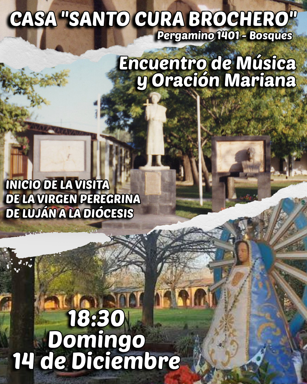Por ese motivo, el domino 14 a las 18.30 se compartirá un momento de encuentro, música y oración en torno a la Virgen, cercanos a Navidad, en la Casa de Espiritualidad Santo Cura Brochero (Pergamino 1401, Bosques), junto con el artista misionero Jorge Zuligoy y su conjunto, que ofrecerán una cantata a la Virgen con ritmos del litoral y de otras regiones del país.