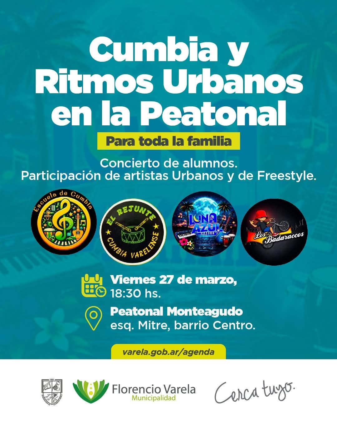 El verano llegó a su fin, pero no las ganas de disfrutar al aire libre; por eso, el otoño trae una fecha musical imperdible: un concierto a cargo de integrantes de la Escuela Municipal de Cumbia en Peatonal Monteagudo -esquina Mitre- el viernes 27 de marzo a partir de las 18.30 hs.