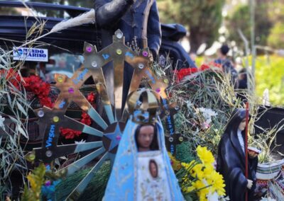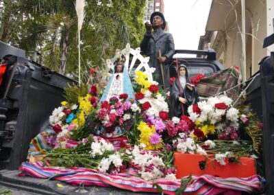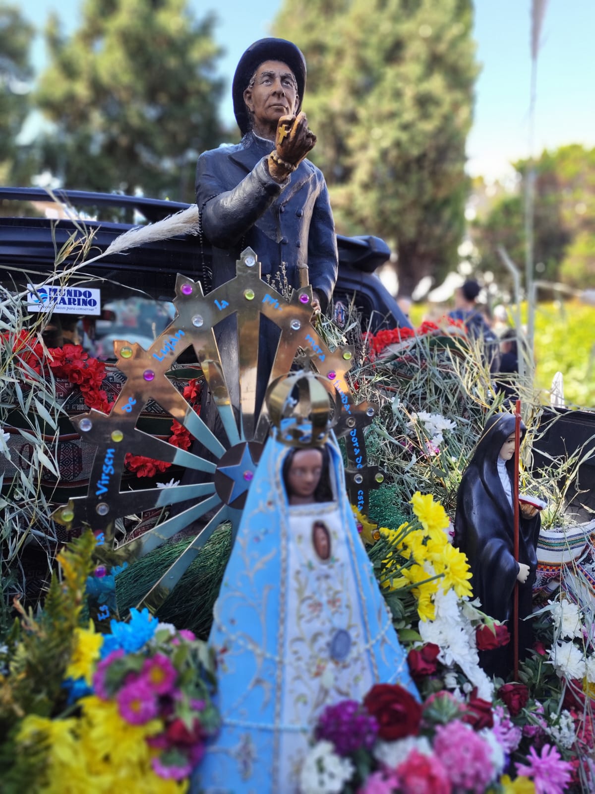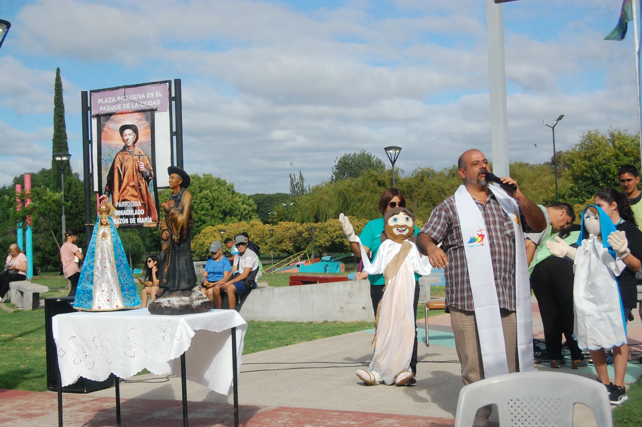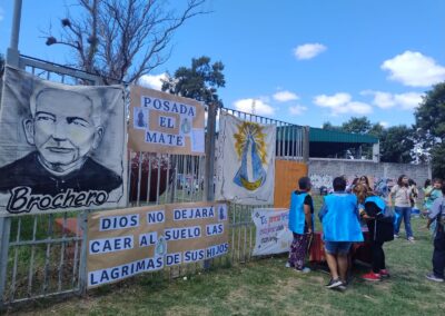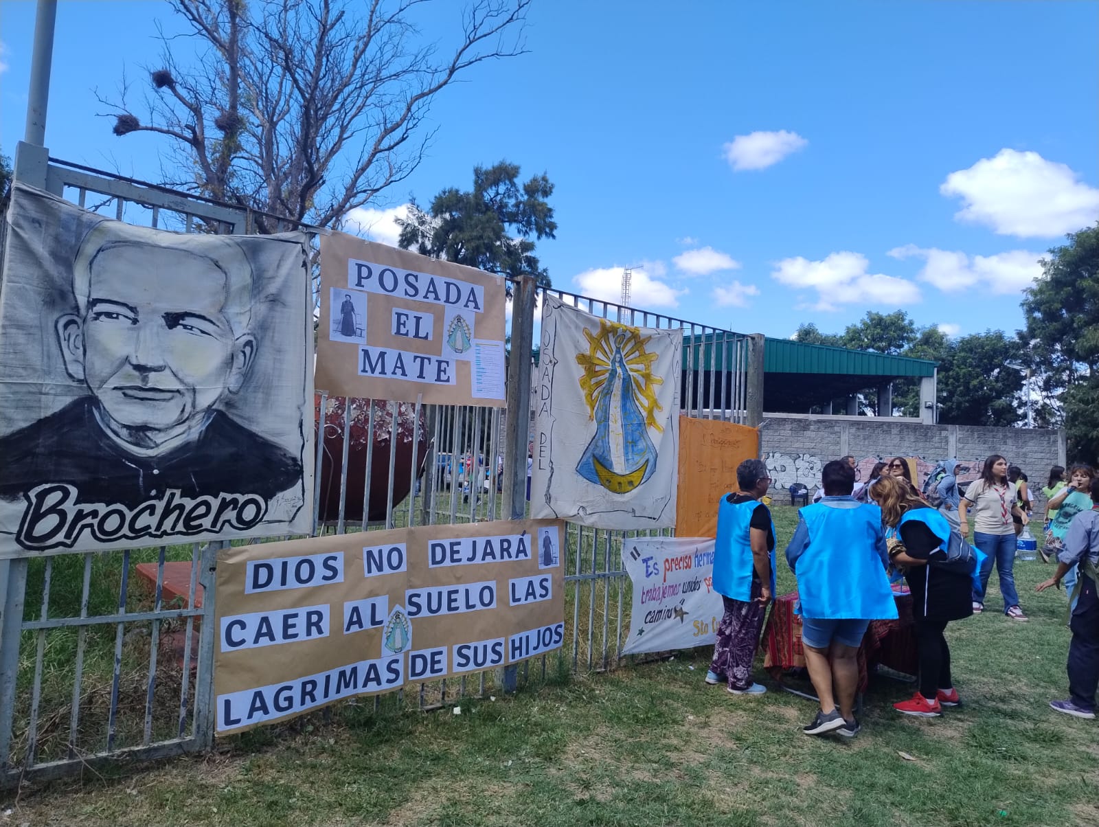 Una gran cantidad de personas que por diferentes motivos no pudieron caminar y quisieron estar presentes recibieron a los peregrinos que se acercaron al predio de Bosques encabezado por la imagen del Santo Cura Brochero y de la Virgen de Luján.