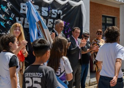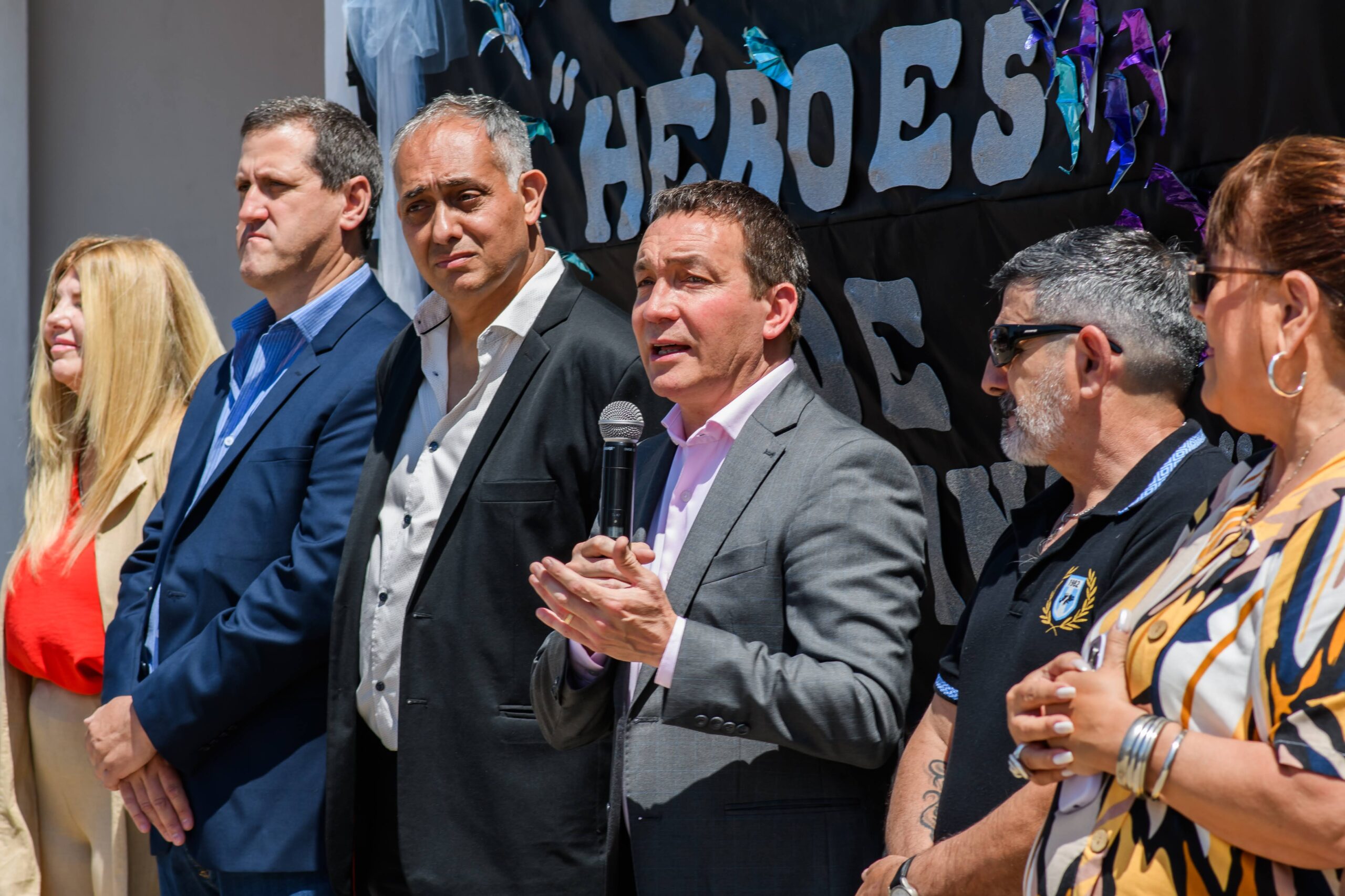 «Es imprescindible mantener la memoria activa y sostener en el tiempo la gesta de nuestros excombatientes. Reivindicar su defensa a la soberanía nacional sobre las islas hace 43 años», afirmó el mandatario comunal -Andrés Watson- durante la celebración en el patio de la institución pedagógica el último viernes de noviembre.