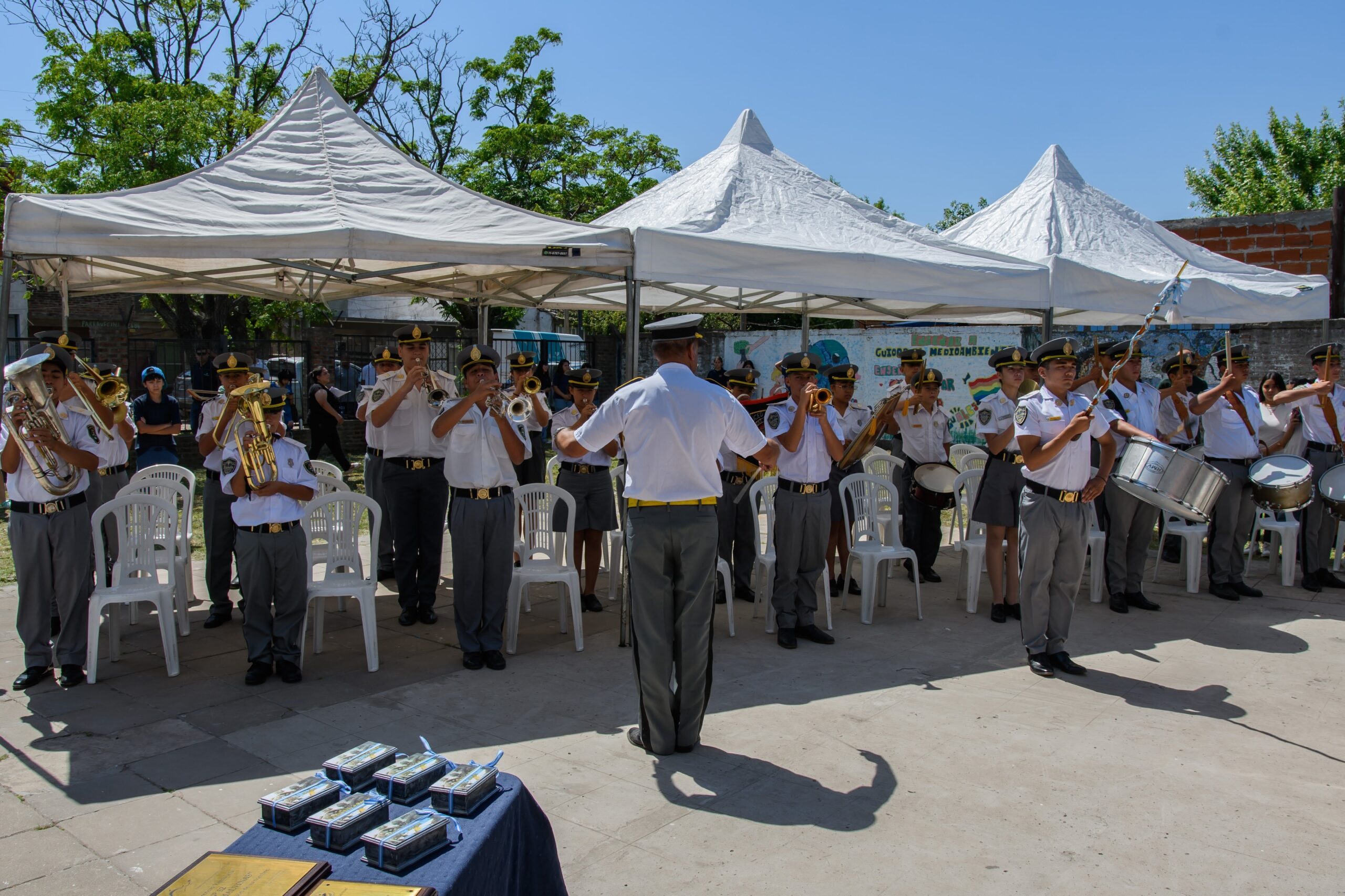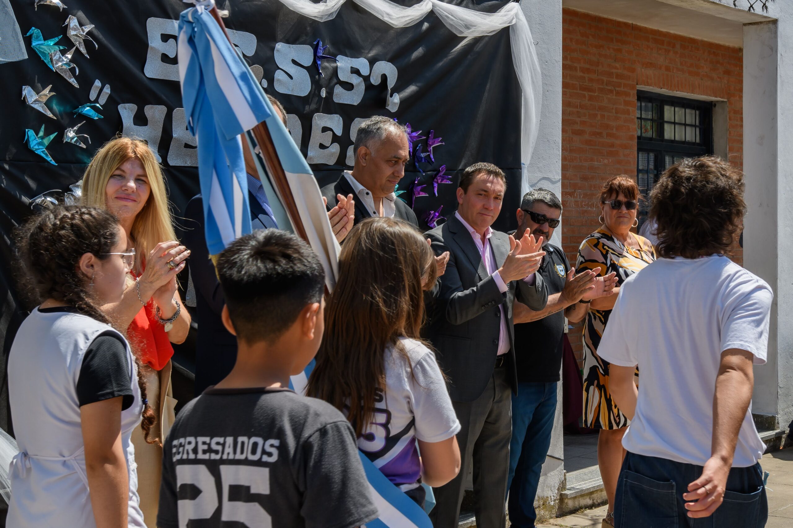 Acompañaron al intendente -que entregó una placa alusiva a la fecha- la secretaria de Educación -Andrea Digiobani-, el jefe distrital de Educación -Alfredo Schveizer- y la presidenta del Consejo Escolar -Claudia Allerbon-.