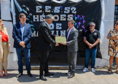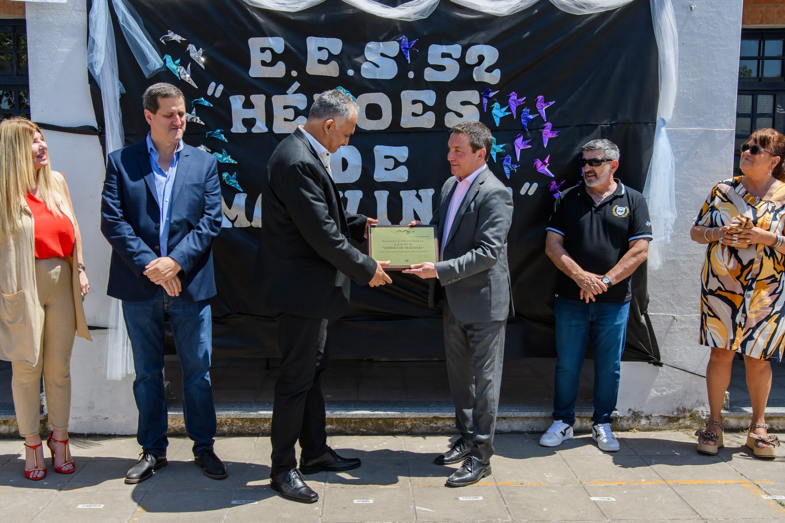 Luego de repasar la historia de la Secundaria, sus protagonistas y el procedimiento para escoger la denominación, su actual responsable -Eugenio García- mencionó a Ramón Toledo, quien falleció en 2022, y Ricardo Velázquez, presente en el acto. Ambos enfrentaron al Reino Unido en el conflicto bélico del Atlántico Sur. Además, desempeñan funciones en el establecimiento en diferentes etapas.