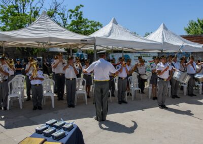 La banda perteneciente a la E.E.S. Nº9001 Liceo Policial «Crío. Gral. Jorge V. Schoo» interpretó el Himno Nacional, Aurora y la Marcha a las Malvinas. El cantautor varelense Kike Leguizamón amenizó el encuentro con un repertorio folklórico.