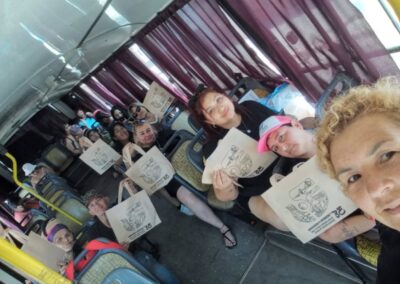 En ese marco también viajaron distintas delegaciones de organizaciones locales. En las redes se vio la actividad de la Agrupación Conciencia Popular cuya referente es la electa concejal (FP) Katy Acosta, quien hasta publicó fotos de un austero ex micro de linea con el cual viajaron a Corrientes.