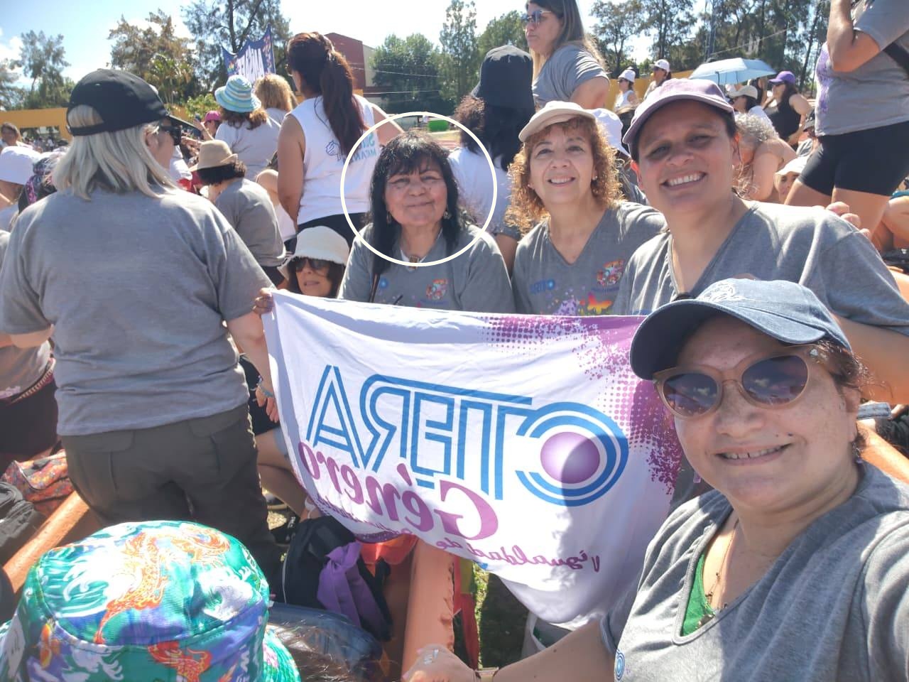“Las Muchachas Peronistas en el 38° Encuentro Plurinacional de Corrientes”, tituló Conciencia Popula. Katy Acosta exhibe una bandera de Andrés Watson.