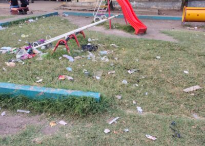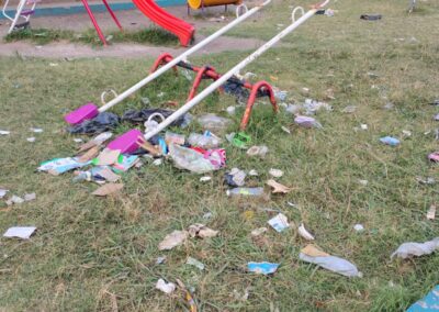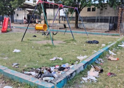 Envío unas fotos que tomé en la plaza de Zeballos que limita con Villa Arias, donde la mugre que dejan los feriantes se suma a de la noche cuando se juntan a chupar. No es vista por las autoridades. Cada dia esta mas abandonada la plaza.