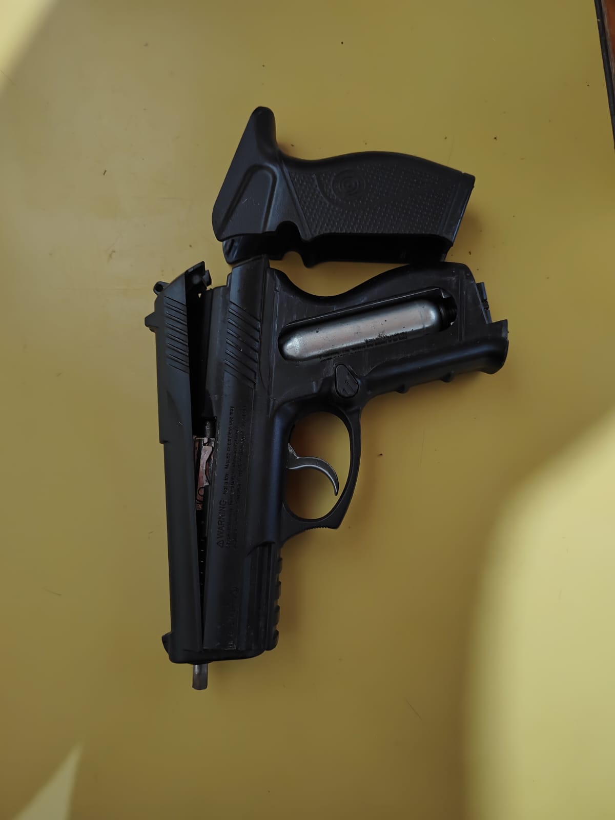 El arma que exhibió el hampón se trató de una réplica de arma de fuego tipo pistola (accionada a gas comprimido).