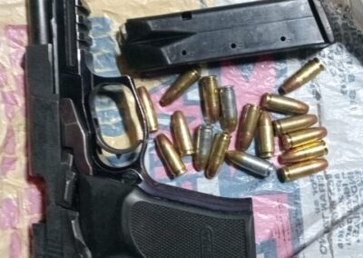 Como resultado de la intervención policial del 22 de octubre del corriente año, se secuestraron 103 envoltorios de cocaína -34 gramos- y 635 dosis de pasta base -181 gramos-, dinero en efectivo, dos Handy, dos teléfonos celulares y una pistola Bersa calibre 9 milímetros con numeración limada cargada con 17 proyectiles y lista para disparar.