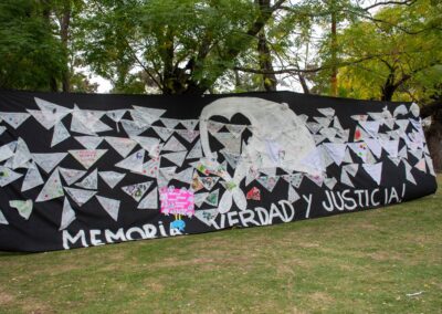“La citada intervención en Florencio Varela no fue solo un acto conmemorativo; fue una reafirmación de que la construcción de la memoria es un proceso esencialmente colectivo. En un clima de respeto y emoción, los pañuelos blancos se multiplicaron en la plaza, llevando escritos mensajes como «30.000 presentes», «Juicio y castigo» o simples dibujos infantiles que reflejan la transmisión de una historia que no debe repetirse”