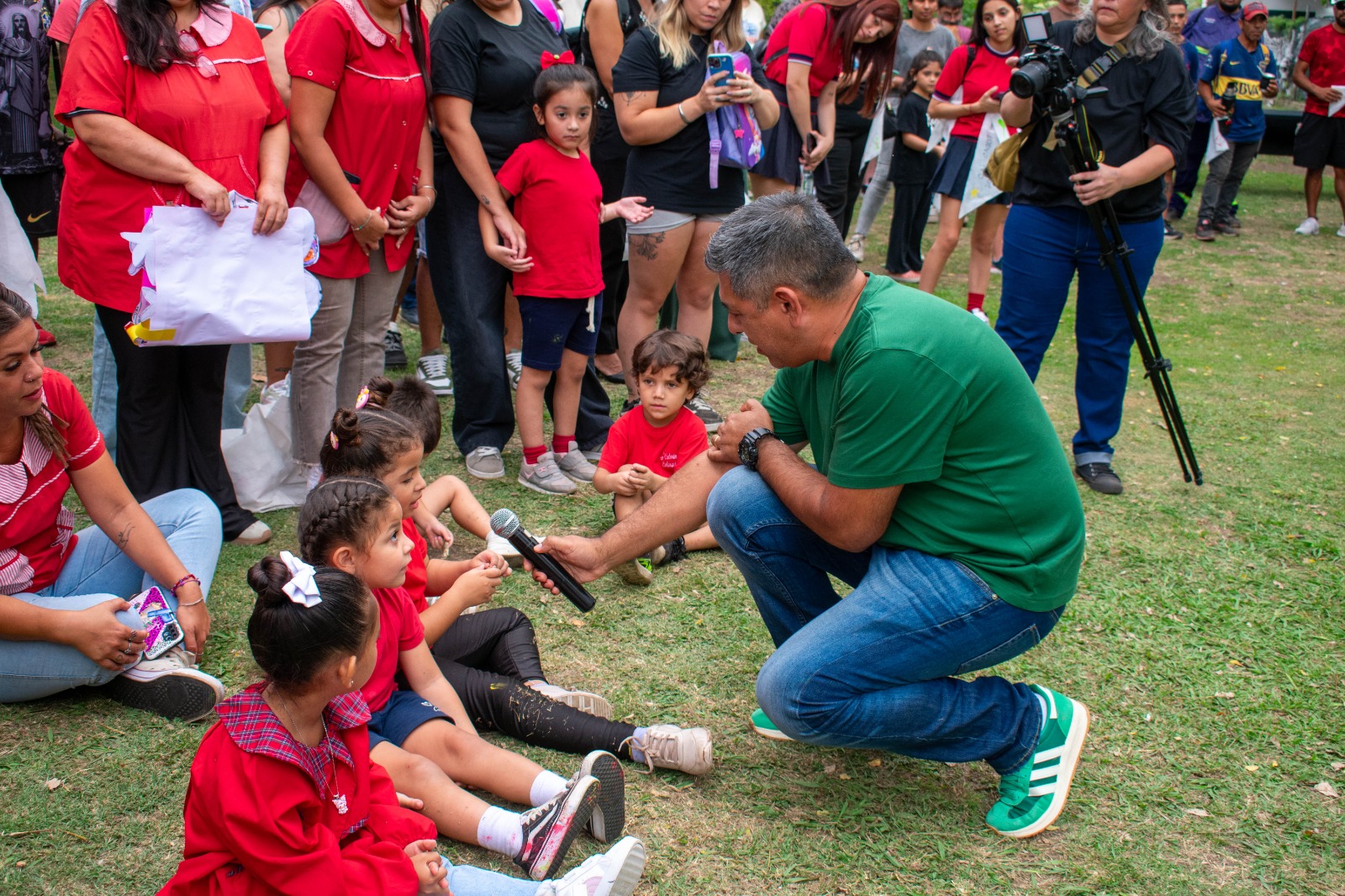 “Antes del inicio formal del acto, el presidente del Honorable Concejo Deliberante, Gustavo Rearte, compartió un momento espontáneo y conmovedor con los más pequeños. Al ver a los niños y niñas de los jardines de infantes que habían llegado junto a sus docentes y familias, Rearte se acercó a conversar con ellos. Allí, sorprendido por la naturalidad con la que los pequeños se referían a conceptos como la memoria, la democracia y la importancia de no olvidar, los invitó a ser parte activa de la jornada”