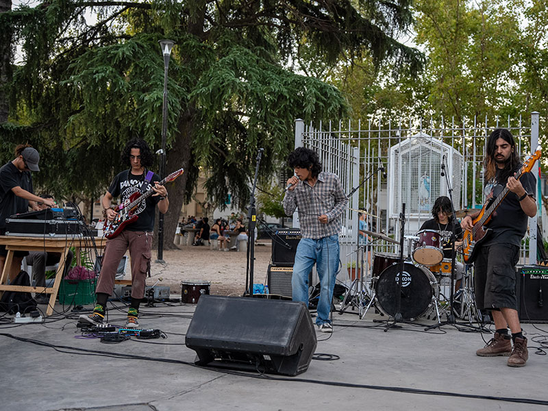 Con una energía imponente, dos conjuntos pertenecientes al programa “Escuela Bandas de Rock ‘Willy Quiroga’” transformaron la plaza San Juan Bautista en su escenario para presentar un repertorio de canciones que cautivó a los espectadores.