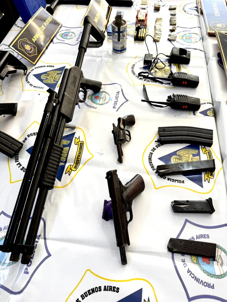 El hallazgo de armamento se constituyó en un punto central de la pesquisa. Según precisaron fuentes de la investigación, en los domicilios allanados se incautó una carabina calibre .40 sin numeración, un revólver marca Pucará calibre .22, un pistolón de cañón simple calibre .20 sin numeración, y un pistolón Rexio Super 152 de doble cañón calibre .14. Además, los efectivos decomisaron 41 proyectiles de diferentes calibres y varias prendas de vestir que, según las fuentes, habrían sido utilizadas durante el ataque.